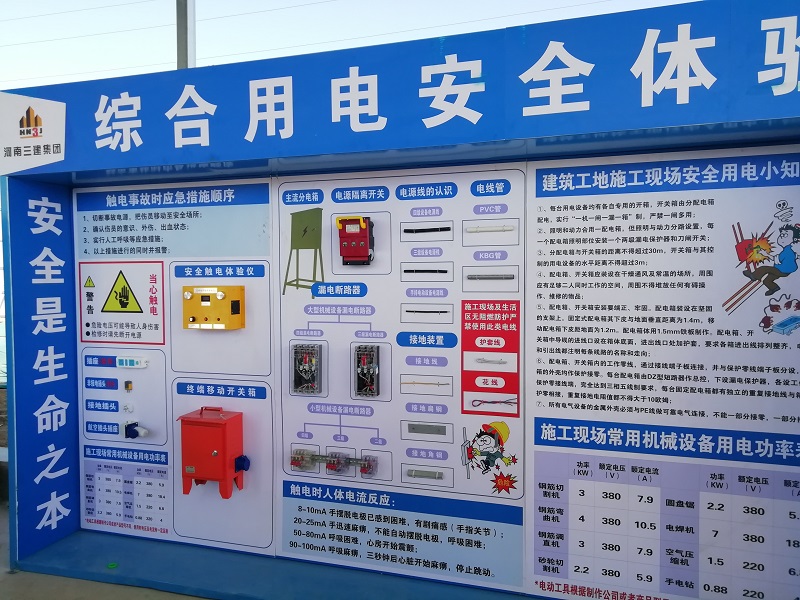 河南三建建設集團承建濟源市客運站南站項目安全體驗區和質量樣板區建成,安全體驗區設置了安全帽撞擊防護體驗、綜合用電體驗、消費器材使用體驗和鋼絲繩使用方法展示。